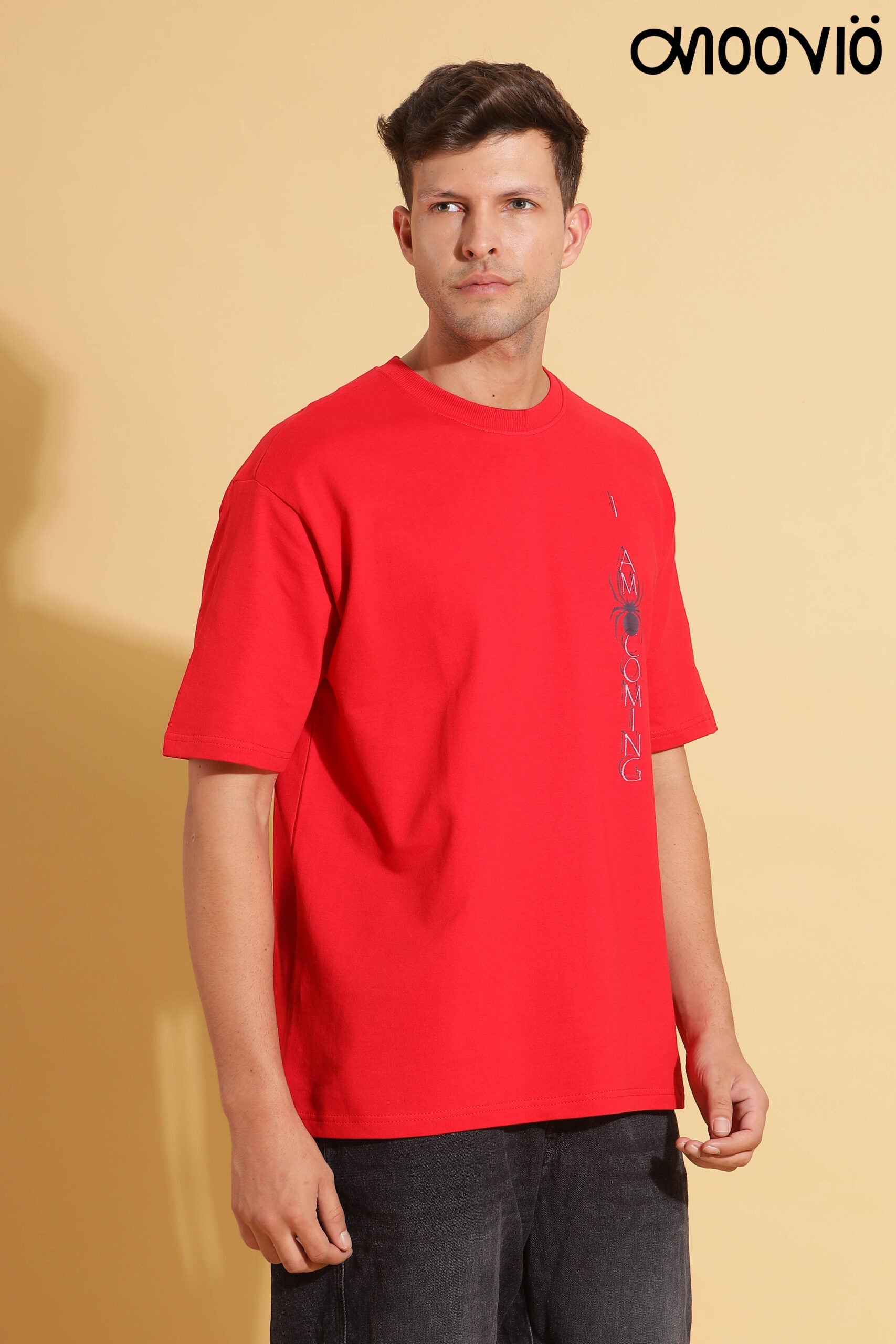 Men's Red color WARNING Printed Premium Oversize Tee